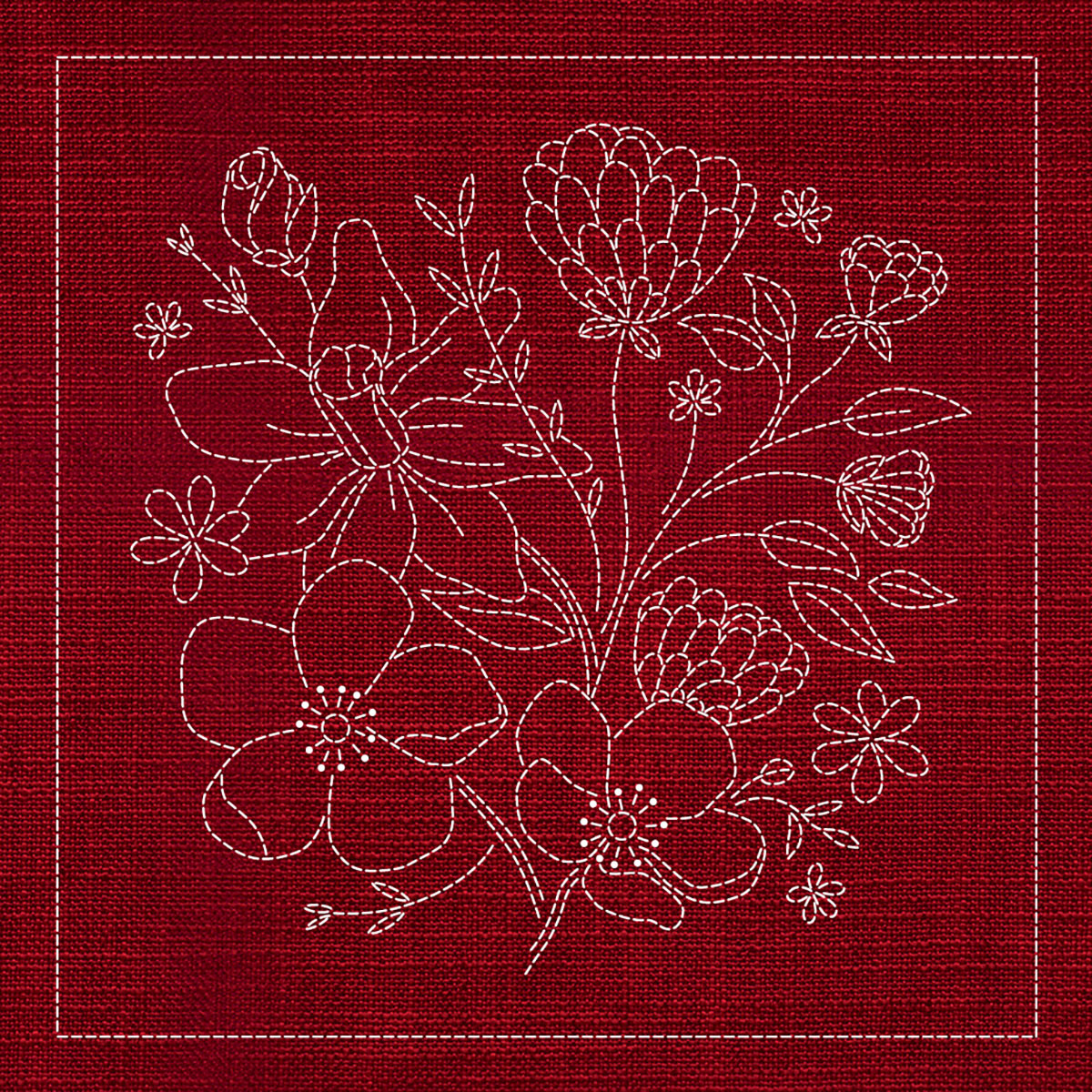 SASHIKO WILDFLOWER BOUQUET 33CM X 33CM CHERRY RED